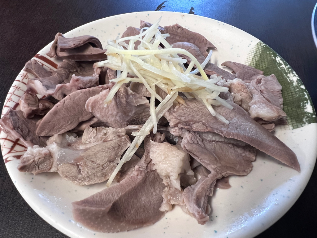 豬心(50元) 招牌的豬心還是有點的,其實比起來我反而比較喜歡小菜式的切盤,因為就是原味之外,還可以沾他們的醬料,我覺得秀明的豬心處理的很不錯,