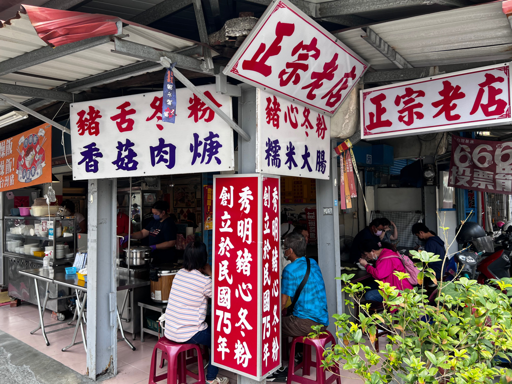 來到旗山真的每個人都說要來吃的猪心冬粉,但我不得不自首,外面好熱我真的吃不下豬心冬粉熱湯耶!!! 所以大家若是想問我專業分享猪心冬粉的口感,此篇可以跳過了~~~😂😂位於三角窗轉角,我蠻喜歡他的用色就是運用柱子,去張貼顯眼的招牌,讓人想錯過都難,內用空間雖然不大,但基本上等一下都會有位子,不過如果是夏天 去吃應該會蠻熱的,因為他是開放空間,因為同時也有熱鍋,所以就偏熱一些,這也是我真的當下無法吃的下豬心冬粉啊~~~