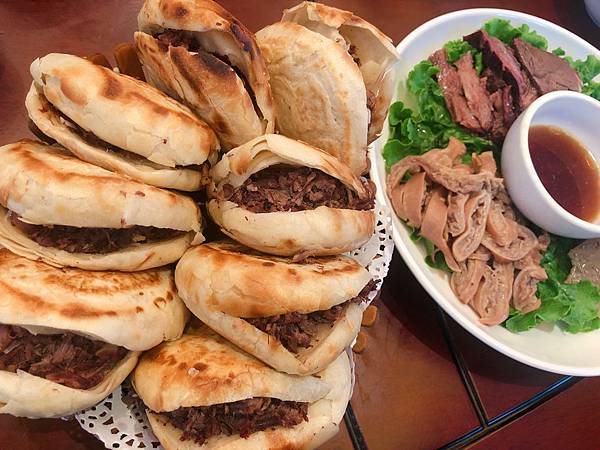 徐水街上其實很常見到驢肉火燒鋪,其實講白話一點就是肉夾饃,餅皮夾肉這樣,但他卻有個很酷的名字,我猜是不是因為外面的餅是用炭火燒製,卻給他一個氣勢磅礴的名字,驢肉火燒感覺很威 哈哈哈哈裡面的驢肉跟剛剛的驢肉切片處理方式不同,他是絲狀型,也已經進行調味拌炒過才夾入完全無調味的餅中,由驢肉帶出餅皮麵粉香氣